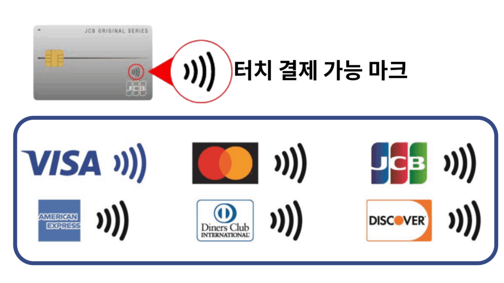 터치 결제가 가능한 신용카드만 사용할 수 있습니다. 마크의 유무를 확인합시다. 불행히도 마크가 없는 신용카드는 사용할 수 없습니다.