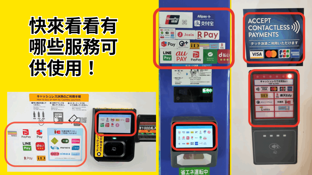 首先,請檢查自動販賣機上顯示的交通IC卡(例如Suica卡)或二維碼支付的標識,看看它們是否支援您想要使用的付款方式。讓我們來看看日本最受歡迎的無現金支付服務。